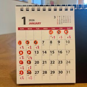 2025年11月、12月、2026年1月の営業日 2025 11/05 news 2025年11月5日 目次2025年11月の営業日 11月22日(土)午後5時30分までの営業11月29日(土)午後5時までの営業 2025年12月の営業日 12月29日(月)臨時営業12月31日(水)午後1時まで 2026年1月の営業日 1月1日~6日 正月休み news よかったらシェアしてね! URLをコピーしました! 「常歩(なみあし)-合理的身体操作」セミナーに行ってきました! 今年で開院15周年、整体師として20年 関連記事 2025年10月、11月の営業日 2025年9月30日 2025年7月、8月の営業日 2025年6月28日 2025年4月、5月の営業日 2025年3月29日 初回の施術は12/3火曜日以降です 2024年9月7日 2025年9月、10月の営業日 2025年8月26日 2025年8月、9月の営業日 2025年7月31日 2025年5月、6月の営業日 2025年5月13日 2026年1月~2月の営業日 2026年1月14日