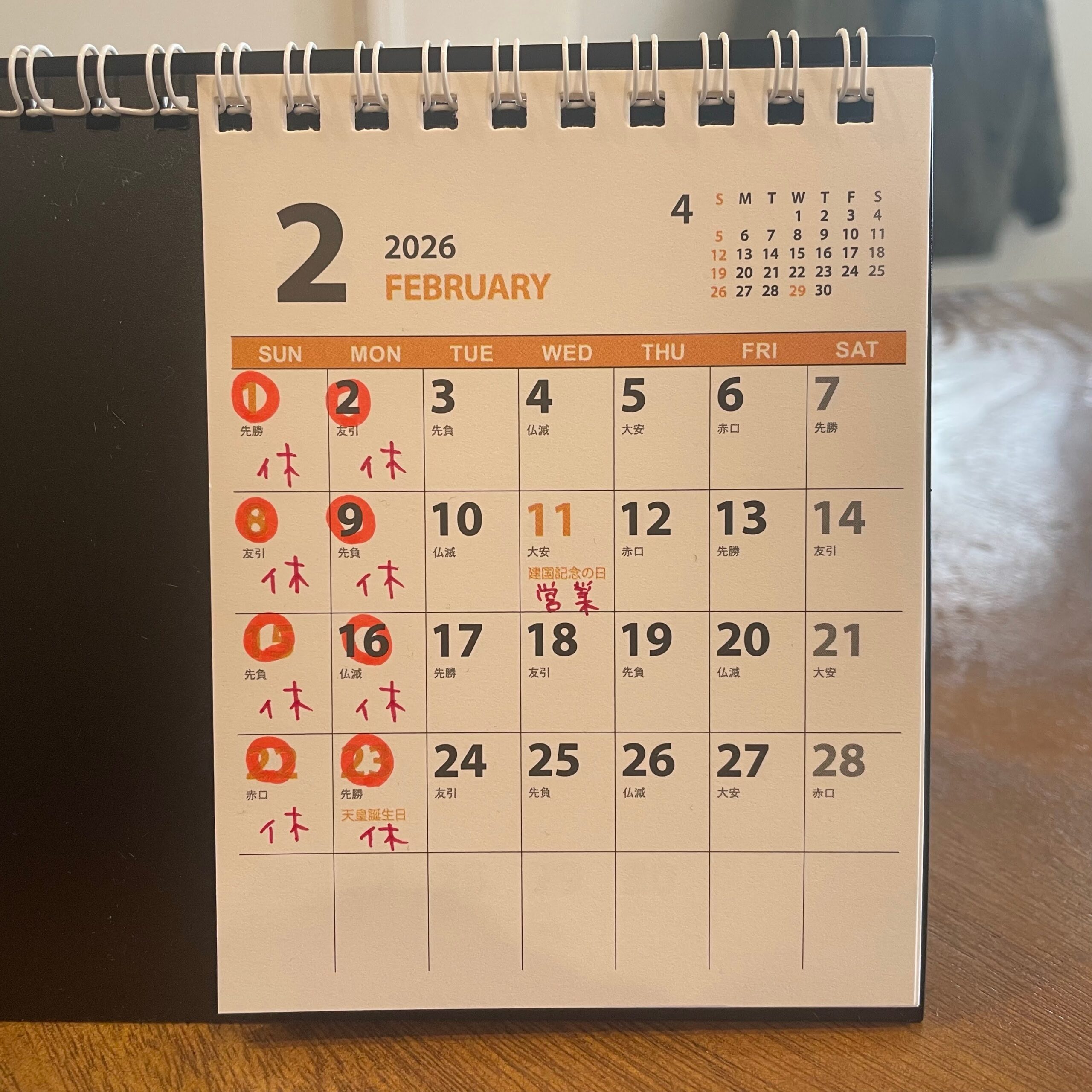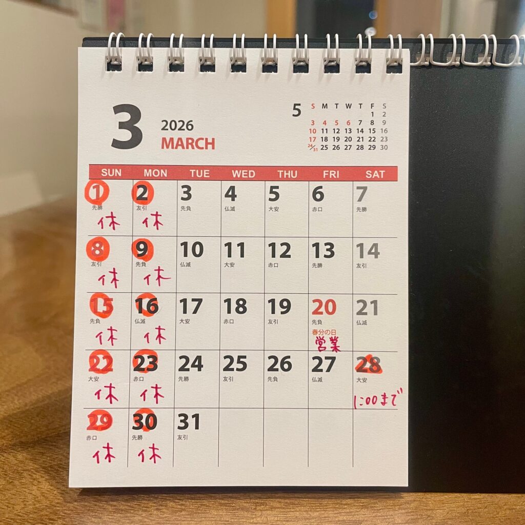 2026年2月~3月の営業日
